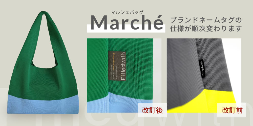 【マルシェバッグ】ネームタグ仕様変更のお知らせ 2025.09.16 ショップ情報 商品関連 【Marché】お知らせブランドネームタグの変更につきまして 新色『グリーン×サックス』より、ネームタグが新しくなります。 ◆ 複数色のご購入・リピート購入のお客様へ 他色のマルシェバッグにつきましては、旧ネームタグ仕様の在庫がなくなり次第、順次新タイプに切り替わる予定です。カラーにより新旧タグが混在しますので、ご注意ください。 商品ページ内にて『新タイプへの切替え案内がない』カラーに関しましては、旧タイプのネームタグになります。 よろしくお願いいたします。