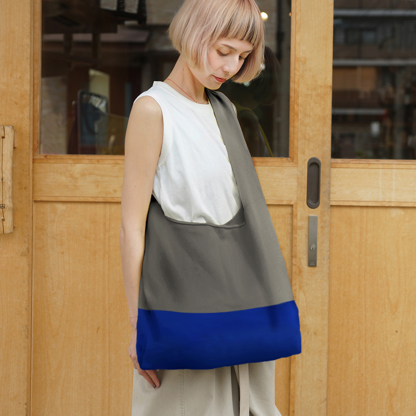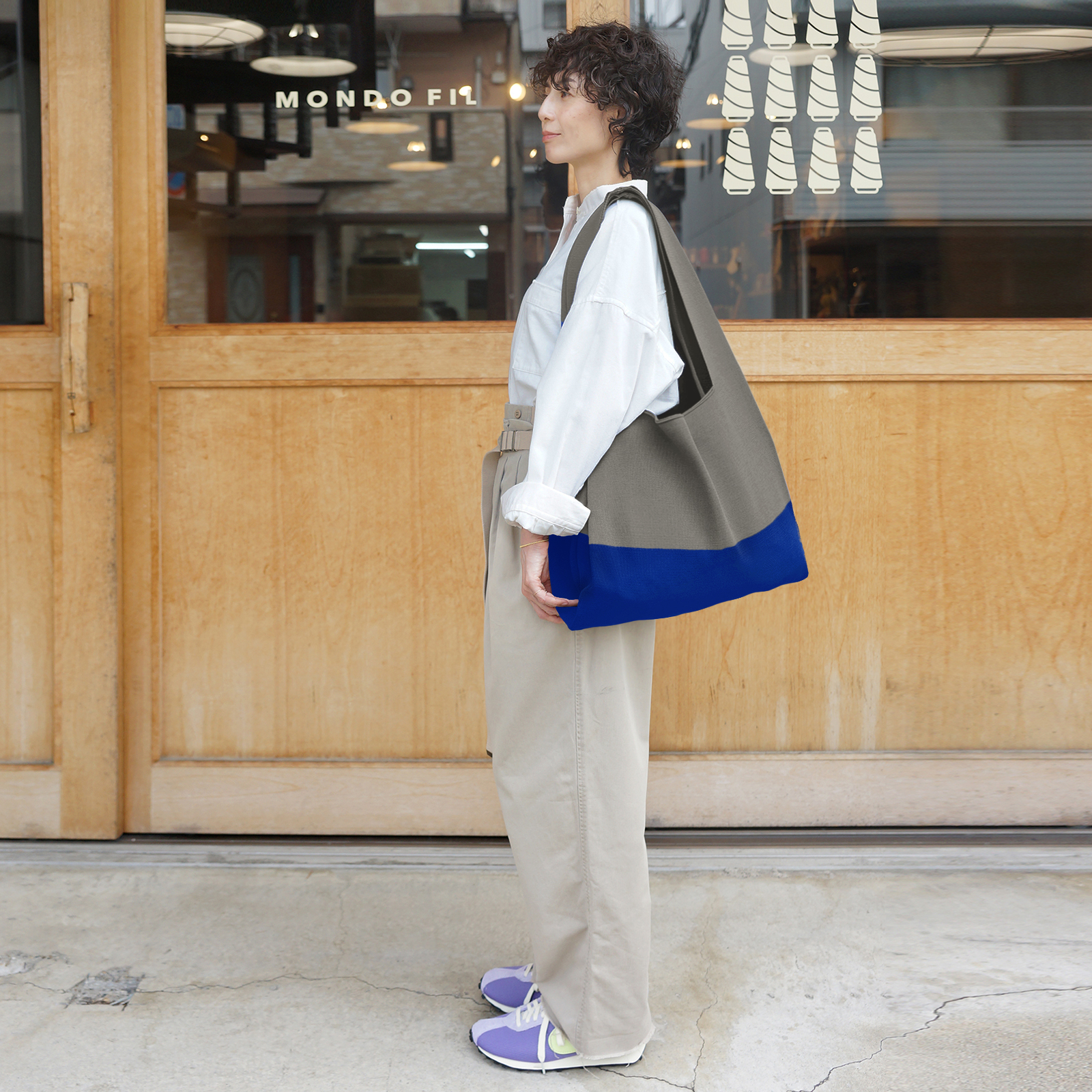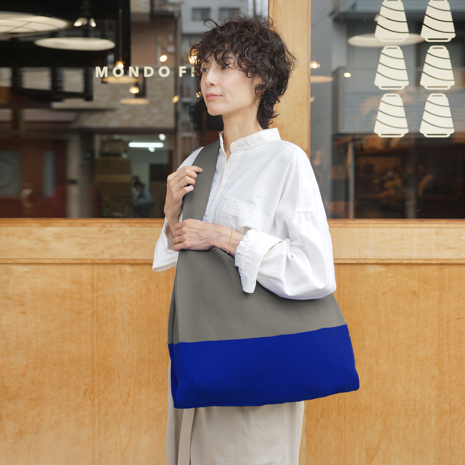 いつものお買いものバッグとしてはもちろん、お出かけのコーディネートにもプラスしたくなるようなバイカラーが魅力。幅広いシチュエーションで活躍するアイテム。