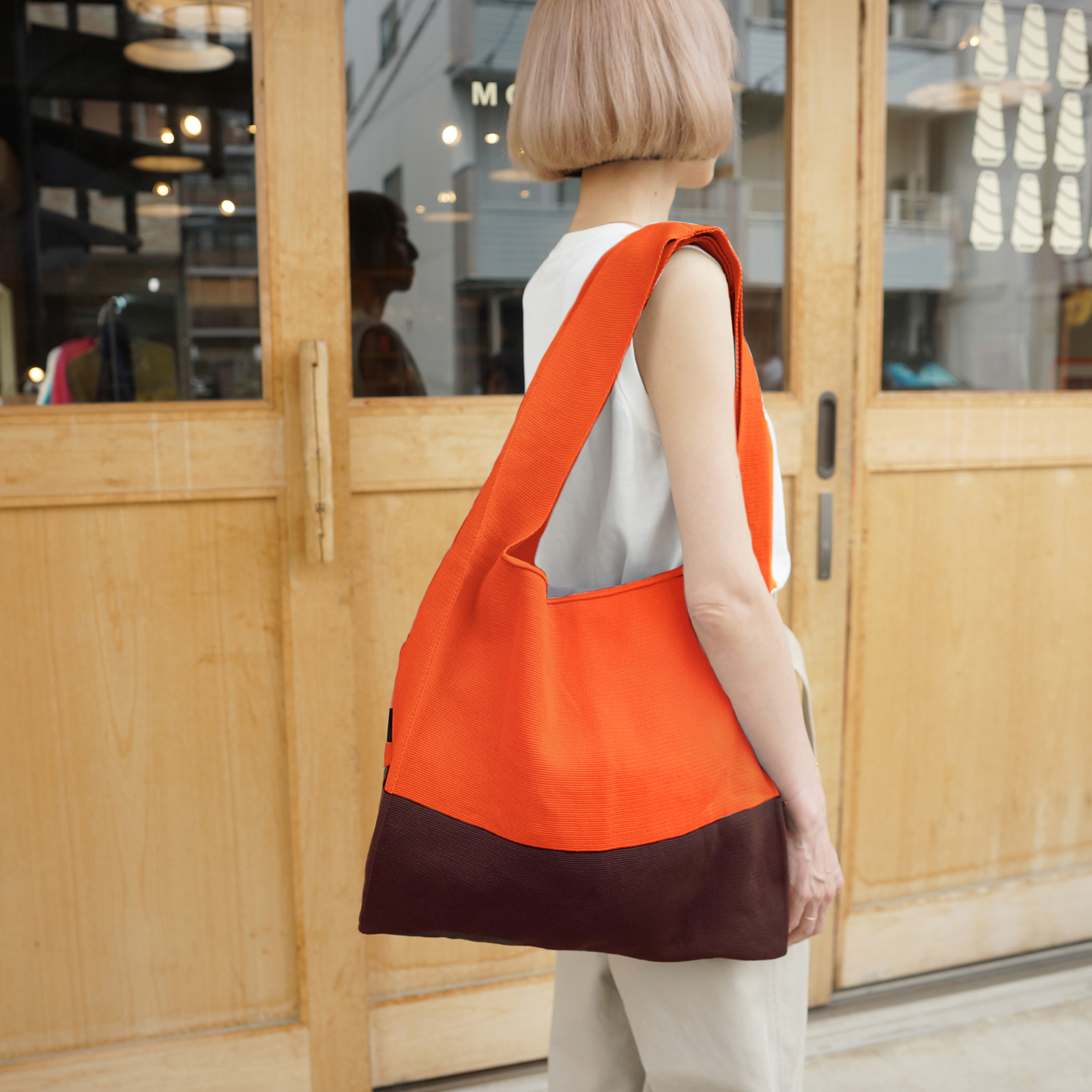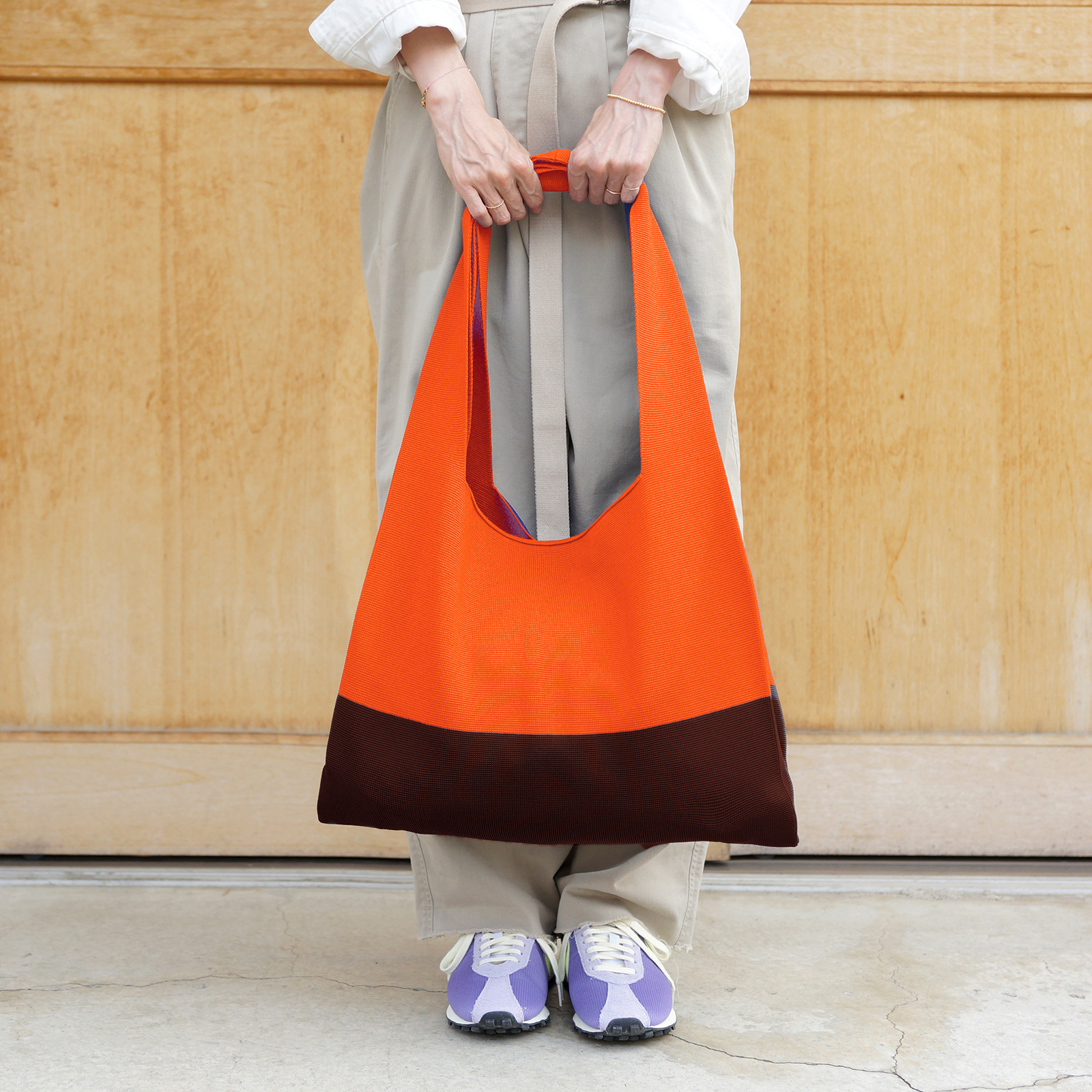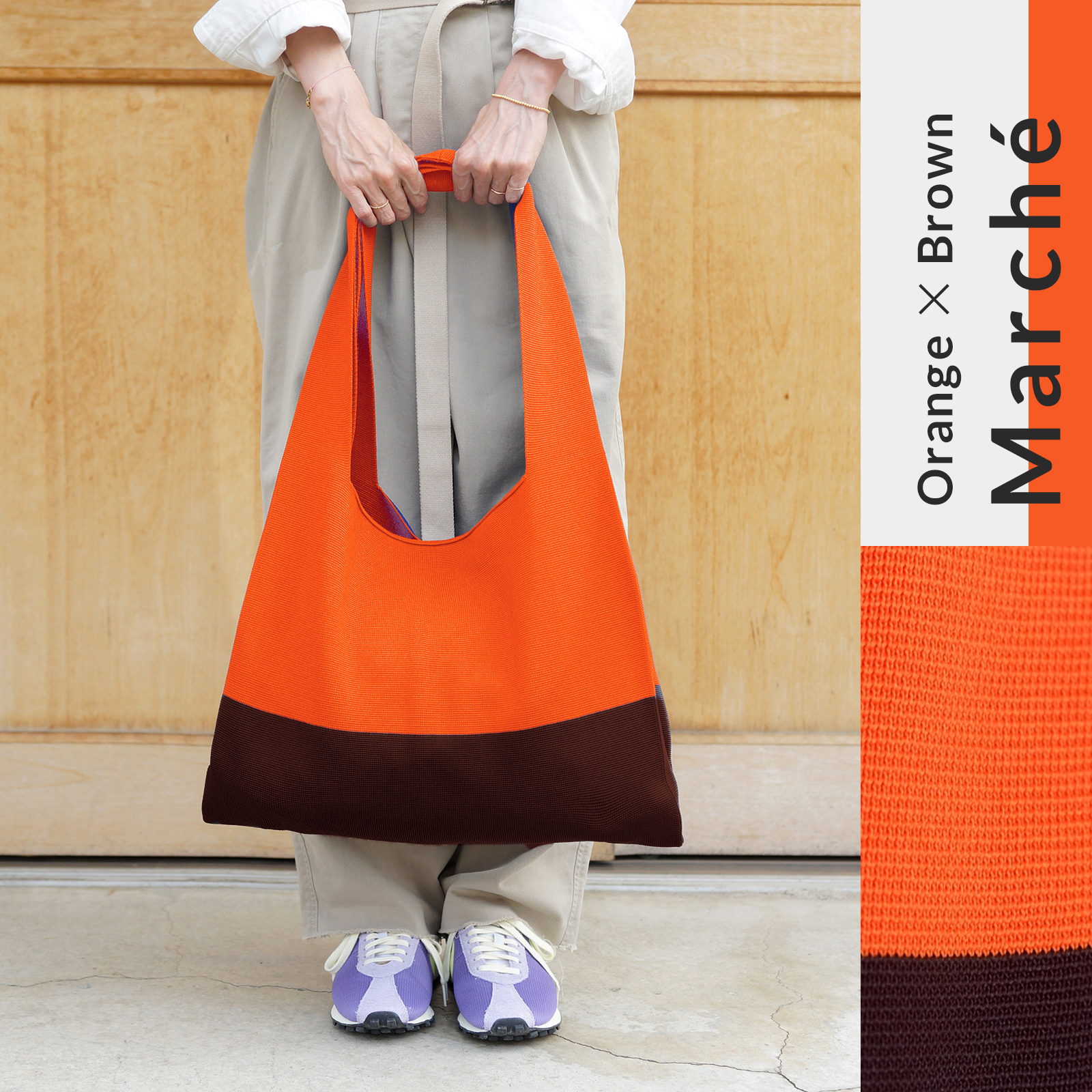 2月上旬発送予定 限定色|Marché マルシェ 【 オレンジ×ブラウン 】 A4対応 / ツートン バイカラー ニットバッグ
